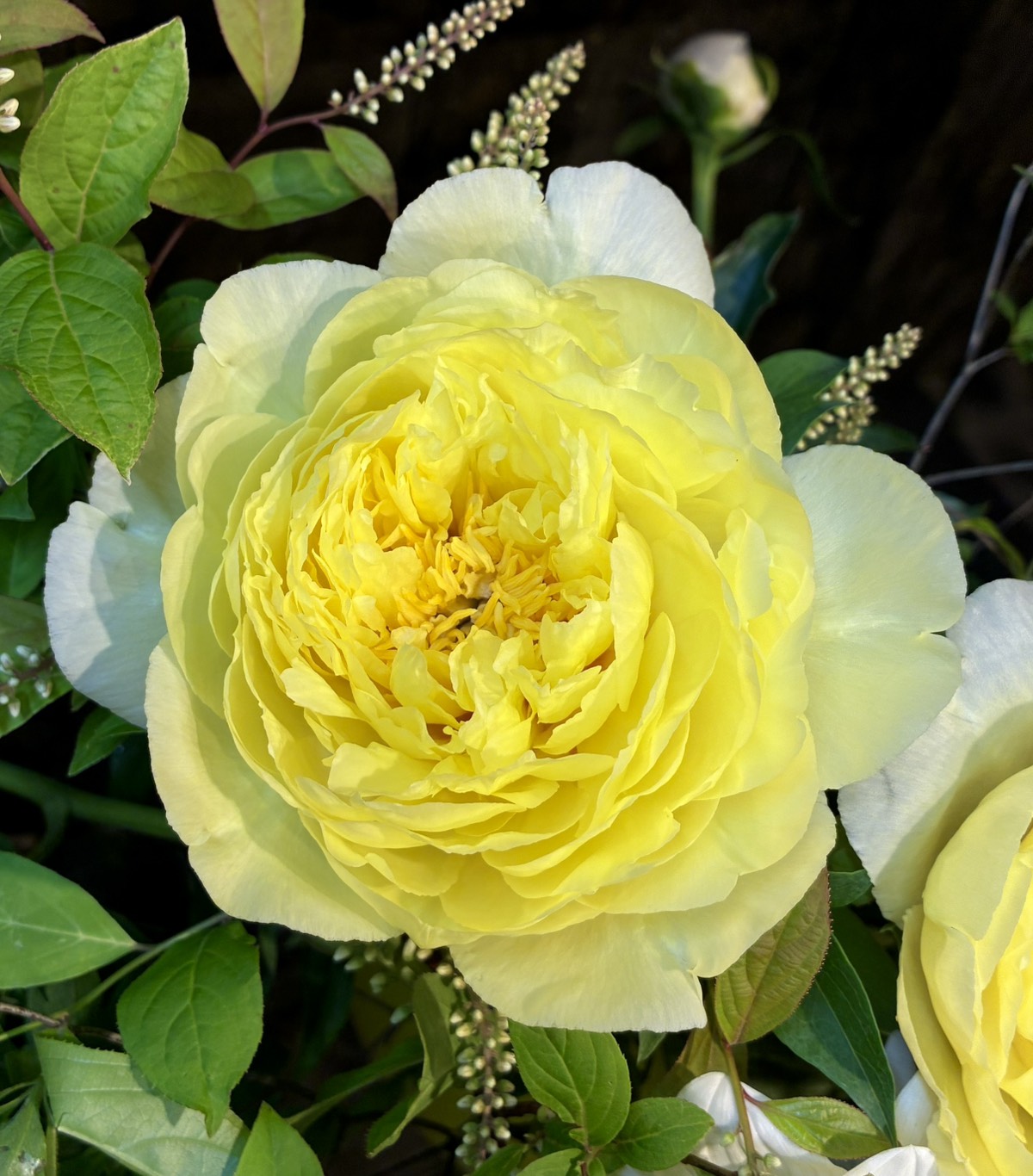 明るい黄色の八重咲品種。